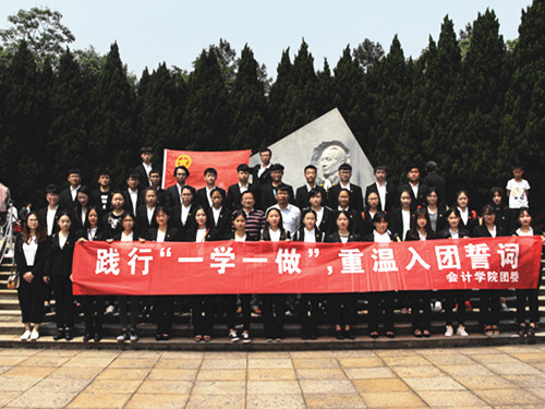 筑共青团之建设,树“一学一做”之风气。在建团95周年之际,会计学院为深化共青团的改革,促进新鲜血液的流动,5月4日,组织各班团支部召开组织生活会,探讨如何做一名合格的团员。为加强广大团干的思想道德建设,5月6日,会计学院团委组织团委学生干部代表前往胡耀邦陵园,开展了“践行一学一做,重温入团誓词”主题教育实践活动。此外,会计学院还组织开展了升旗仪式、新入团员团课培训活动、主题征文活动、主题団史知识竞赛活动等,进一步巩固共青团建设,深刻反映共青团的先进性,树立了良好的共“一学一做”风气。“会计成就梦想第八季第三期”之“不忘初心,感恩前行”主题祝福征集活动更是号召同学们用自己的双手,为建团95周年献礼,为青春梦想赠言。在会计学院五四表彰大会上,还对优秀团员、优秀团干部、先进基层团组织进行了集中表彰和典型宣传。